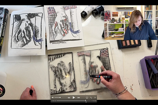 Join Laura for a live session from her studio. This week she's working with drawing and gel printing.