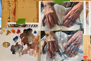 Watch now | Join Laura in the studio while she works on her new painting of hands using water mixable oils